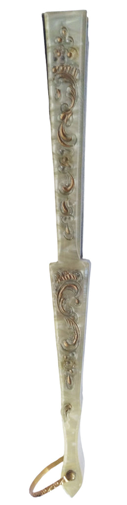 Vintage double-leaf folding fan made of high-quality nacarine (ribbing) and cotton. Circa 1970.