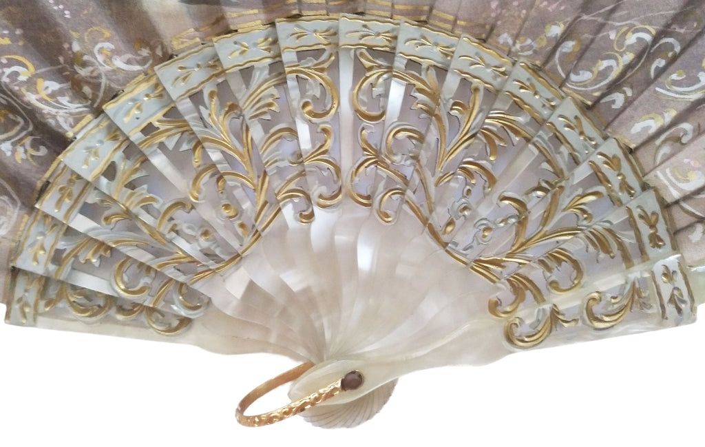 Vintage double-leaf folding fan made of high-quality nacarine (ribbing) and cotton. Circa 1950.